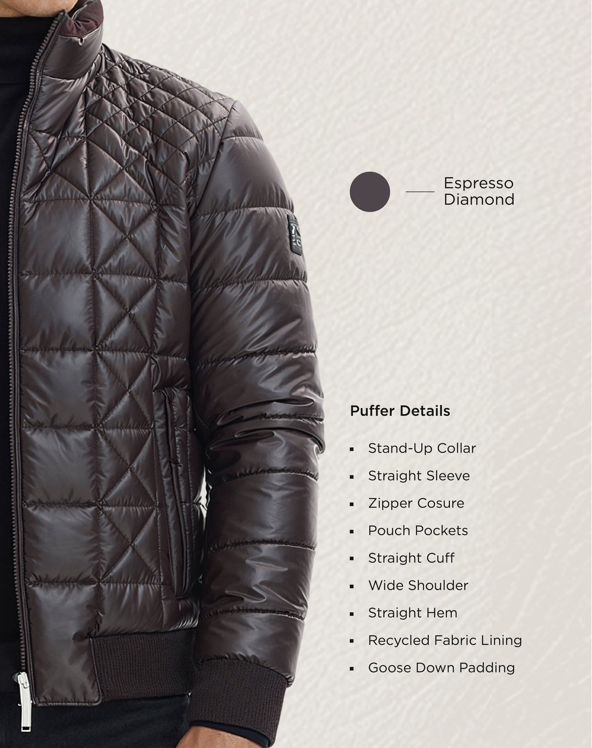 Classic Fit Espresso Diamond Quilted Puffer